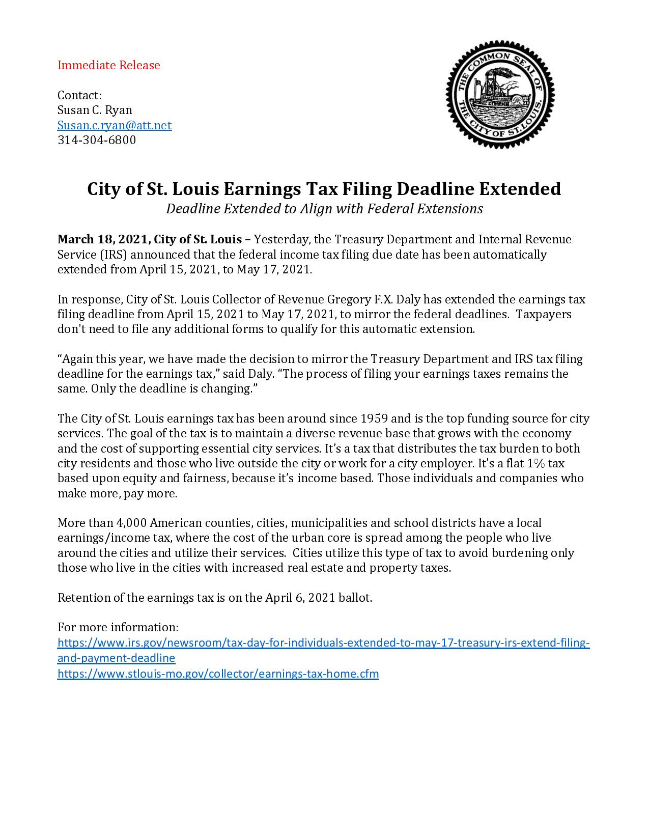 Gregory Fx Daly On Twitter The Collector Of Revenue S Office Has Extended The Earnings Tax Filing Deadline From April 15 2021 To May 17 2021 To Mirror The Federal Deadlines If You