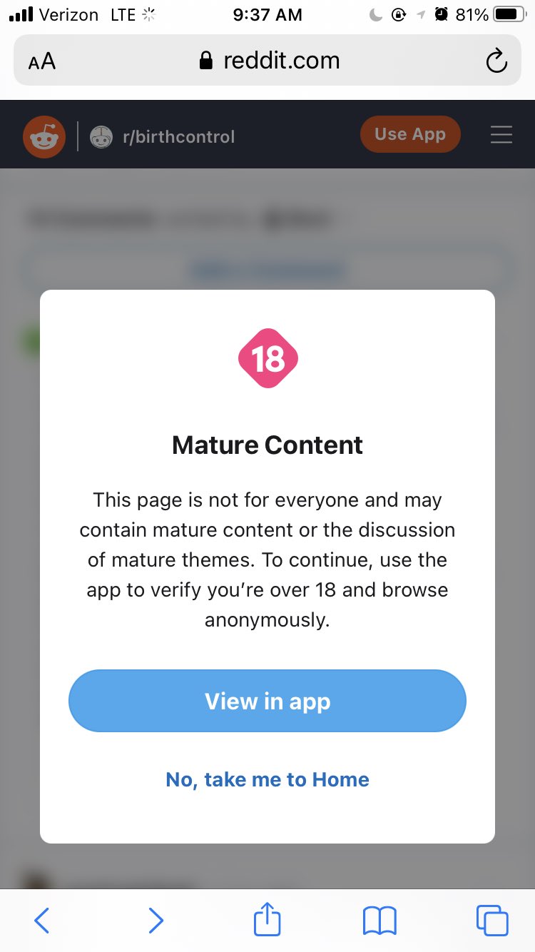 Julianne Cuba On Twitter Hey Reddit Can You Please Tell Me Why The Fuck Side Effects For Birth Control Is Mature Content But Not How To Buy An Ar15 Https T Co Drgsrbwntb Twitter